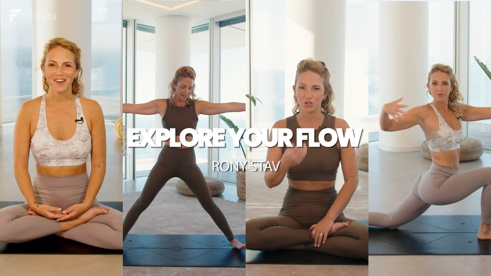 This project was a 60-second promotional video created for FITNUTS, featuring yoga instructor Roni Stav and her signature program Explore Your Flow. The goal was to introduce the instructor and program in a way that feels authentic, inspiring, and on-brand, while keeping the energy high enough to capture attention in under a minute.